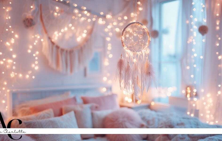 Charlotte’s Tip: For a fun DIY, cut star shapes out of cardboard, wrap them in copper string lights, and hang them. It’s an affordable way to achieve that starry night look above your bed.