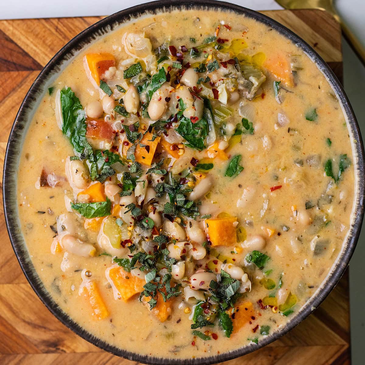 Feta, Sweet Potato & White Bean Soup