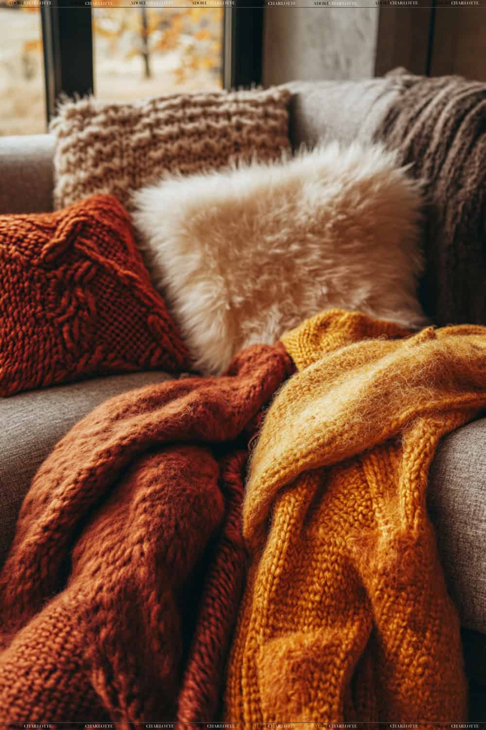Fall is all about warmth and comfort, so adding cozy throw blankets to your living room or bedroom is a must. Choose autumn-inspired colors like burnt orange, mustard yellow, or deep reds. Drape them over sofas, chairs, or even at the foot of your bed to create a welcoming, layered look.