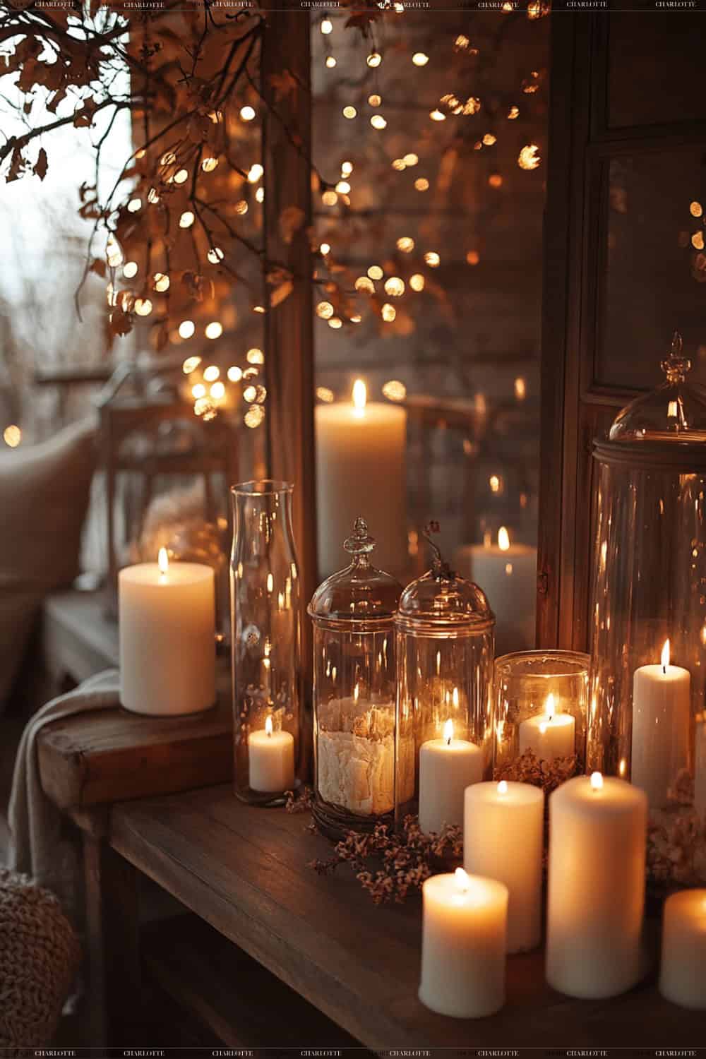 For an even more enchanting effect, place candles of varying heights inside lanterns or glass hurricanes. This adds dimension and depth to your decor. You can also opt for flameless LED candles for a safer alternative, especially if you have pets or small children.