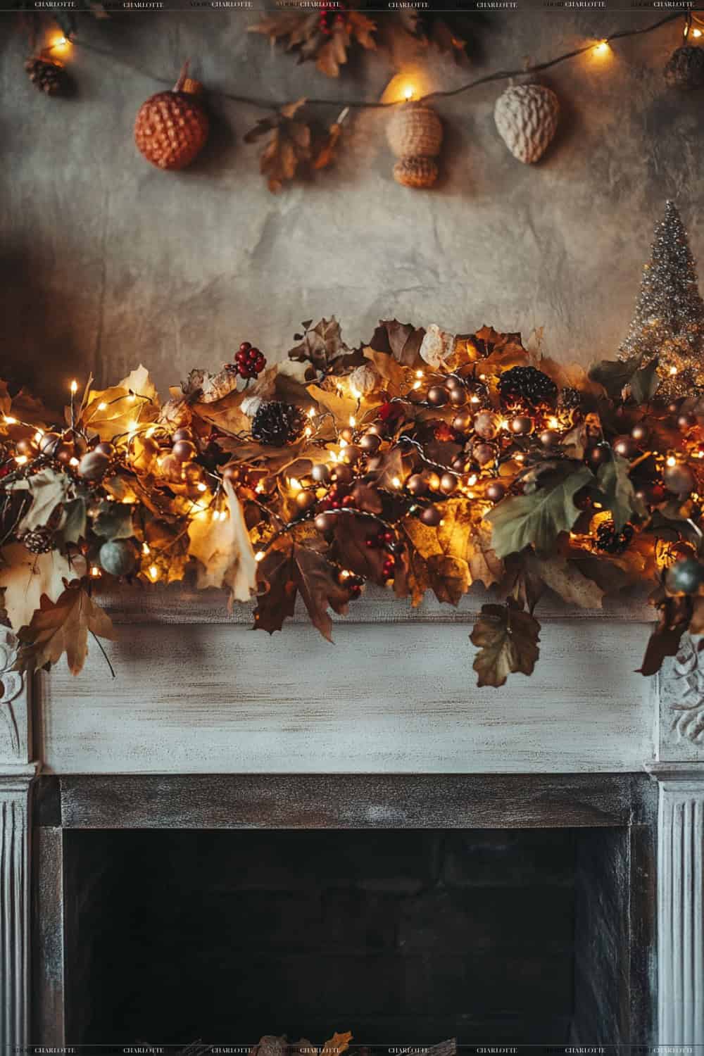 Decorate your mantle with a fall garland made from leaves, acorns, and berries. These garlands can be laid out across the mantle or even draped around mirrors and picture frames for a truly autumnal look.