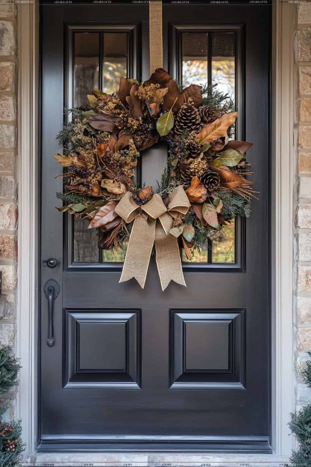 Greet your guests with a festive fall wreath on your front door. Look for ones made from natural elements like dried flowers, leaves, and pinecones. You can even DIY your own with a mix of fall-colored flowers and burlap ribbon for a rustic, cozy feel.