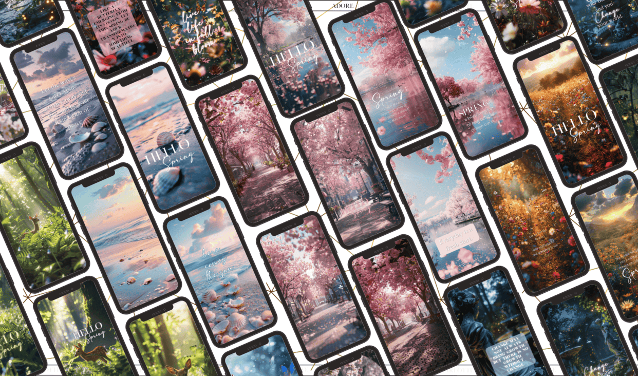 As the snow melts and the days grow longer, nature begins its rebirth into the vibrant spring scene. This magical season brings a plethora of visual delights, from cherry blossoms painting the town pink to serene beaches at dawn adorned with spring’s first blooms. I’ve put together some Spring iPhone Wallpaper as a little treat for you.