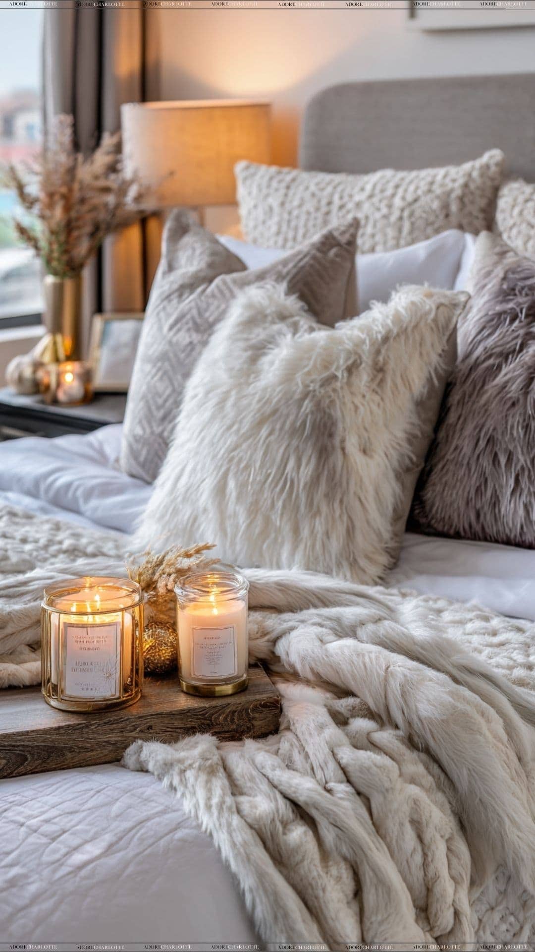 Begin by layering blankets and cushions, then adjust your lighting for a softer, golden glow.