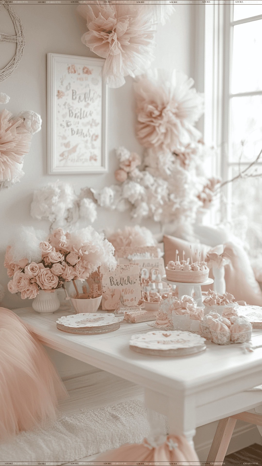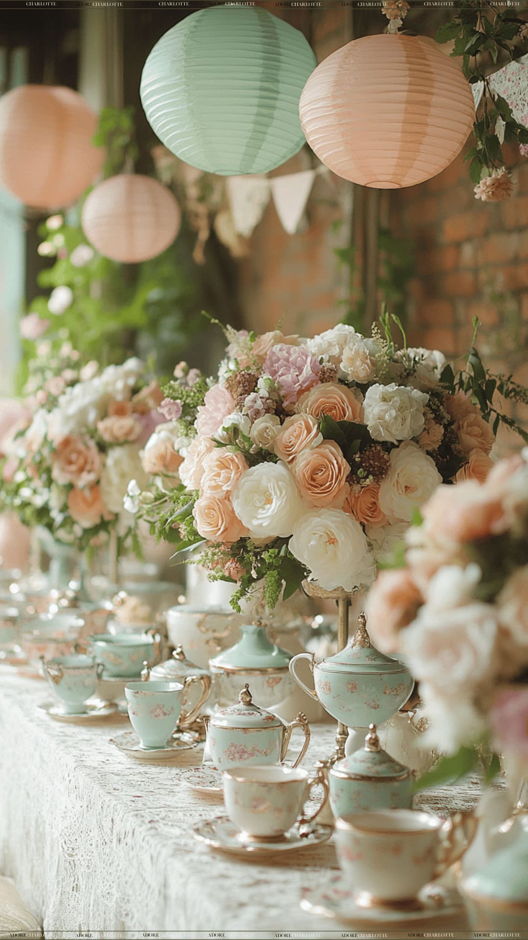 Decorations: Style tables with vintage tea sets, floral arrangements, and lace tablecloths. For added charm, hang paper lanterns and bunting.